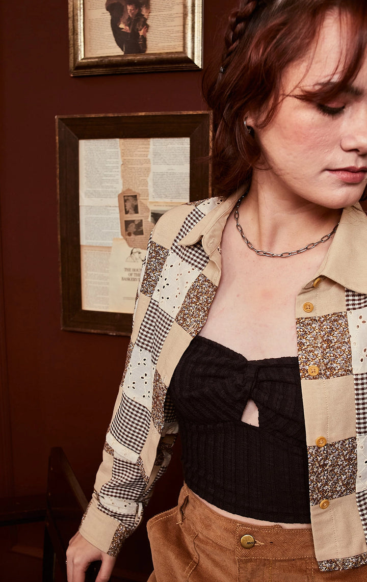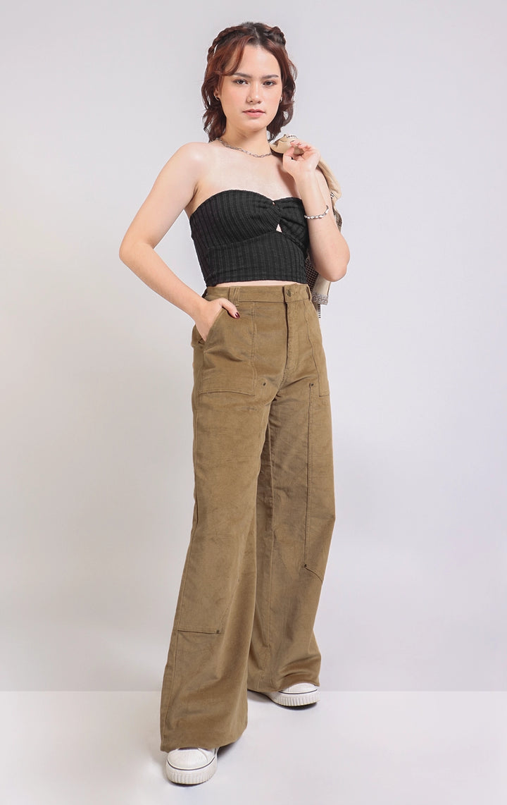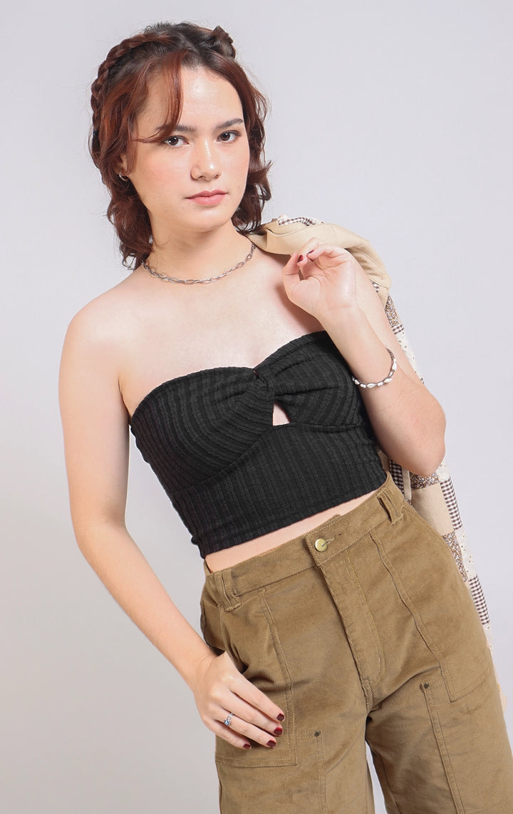 CABLE KNIT TUBE TOP WITH TWIST FRONT