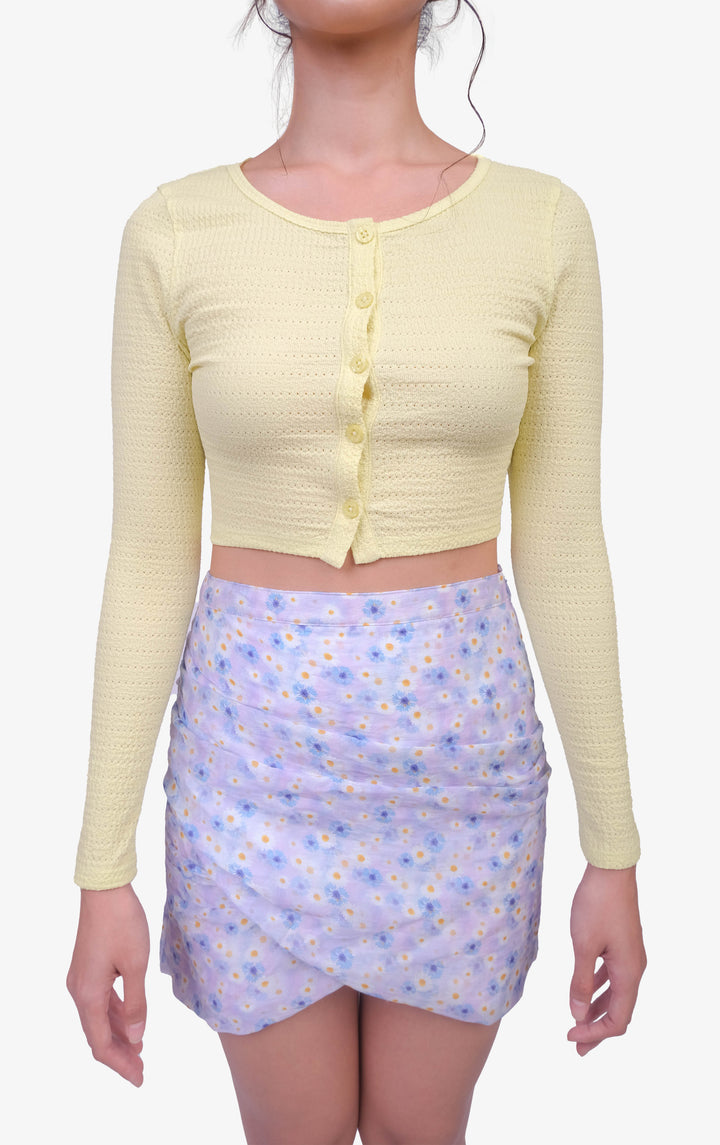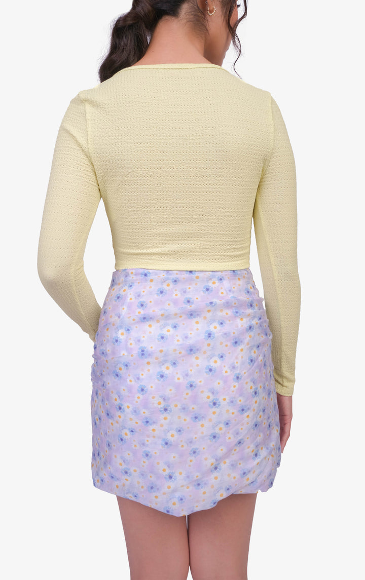 ASYMMETRIC DAISY PRINT MINI SKIRT