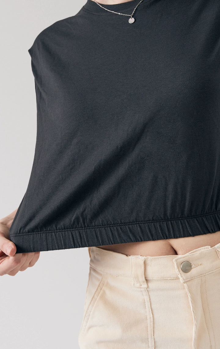 CROPPED MUSCLE TEE WITH GARTERIZED HEM