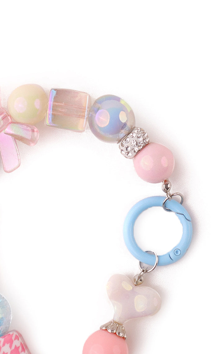 An endearing blend of delicate hearts, a soft bow, and a cuddly bear, complemented by chunky beads and a stylish houndstooth accent. The perfect charm to add a touch of elegance and playfulness to your bag or phone!