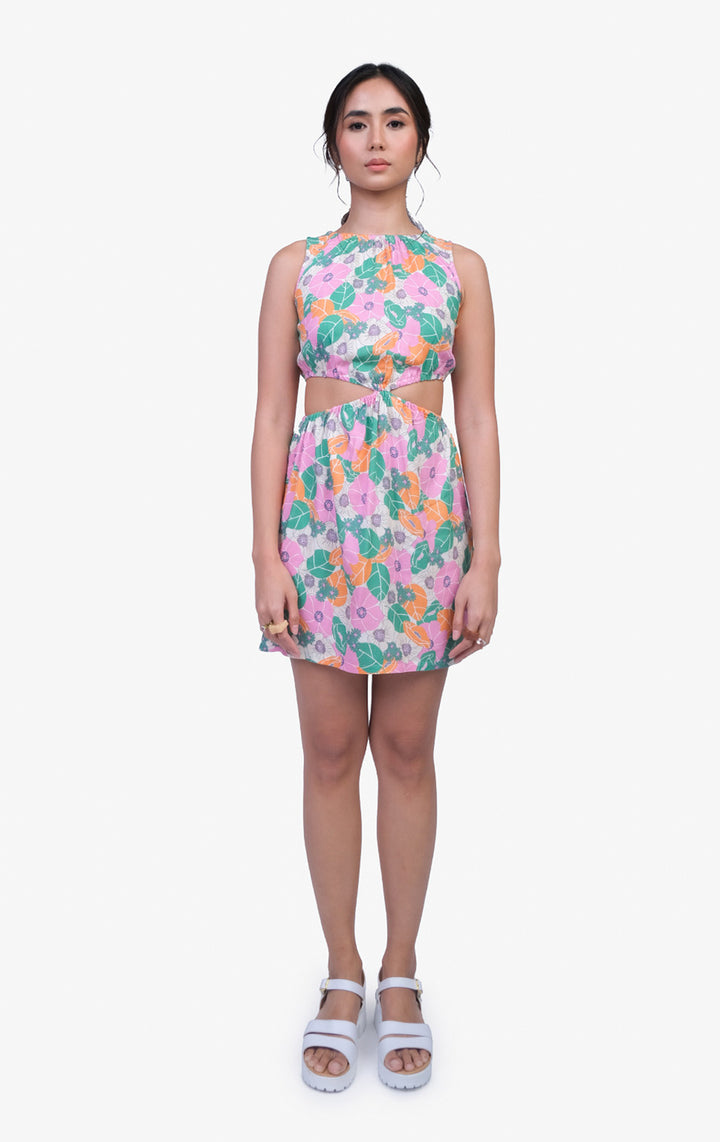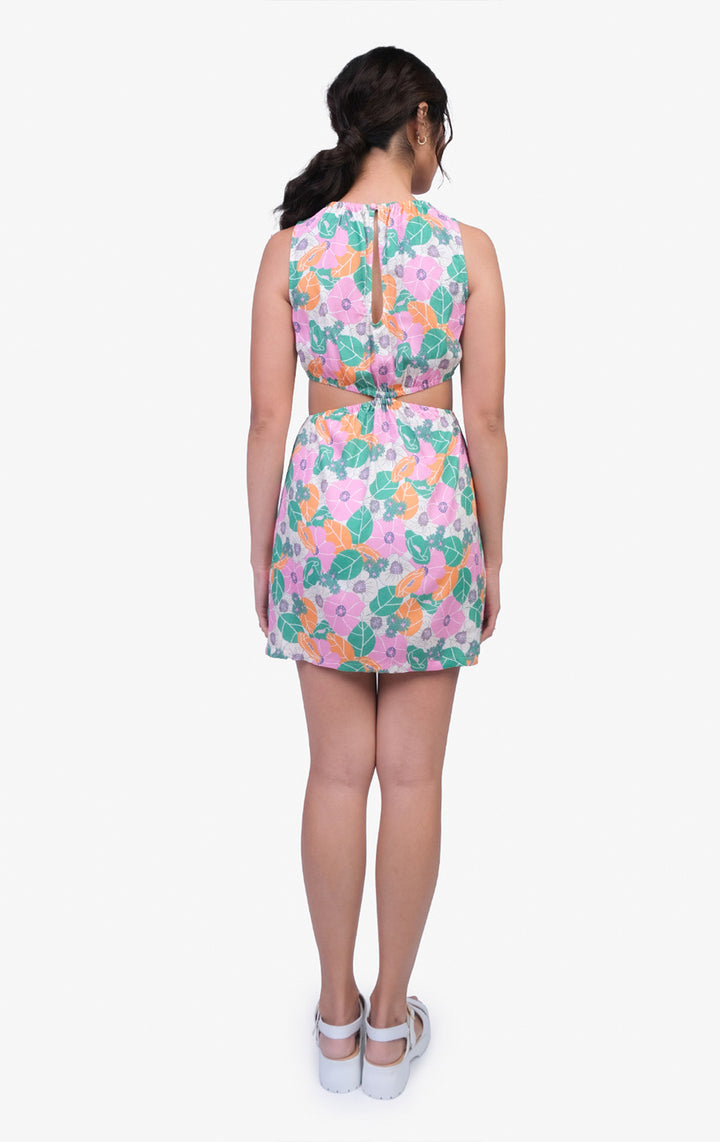 GROOVY FLORAL PRINT HALTER CUT OUT DRESS