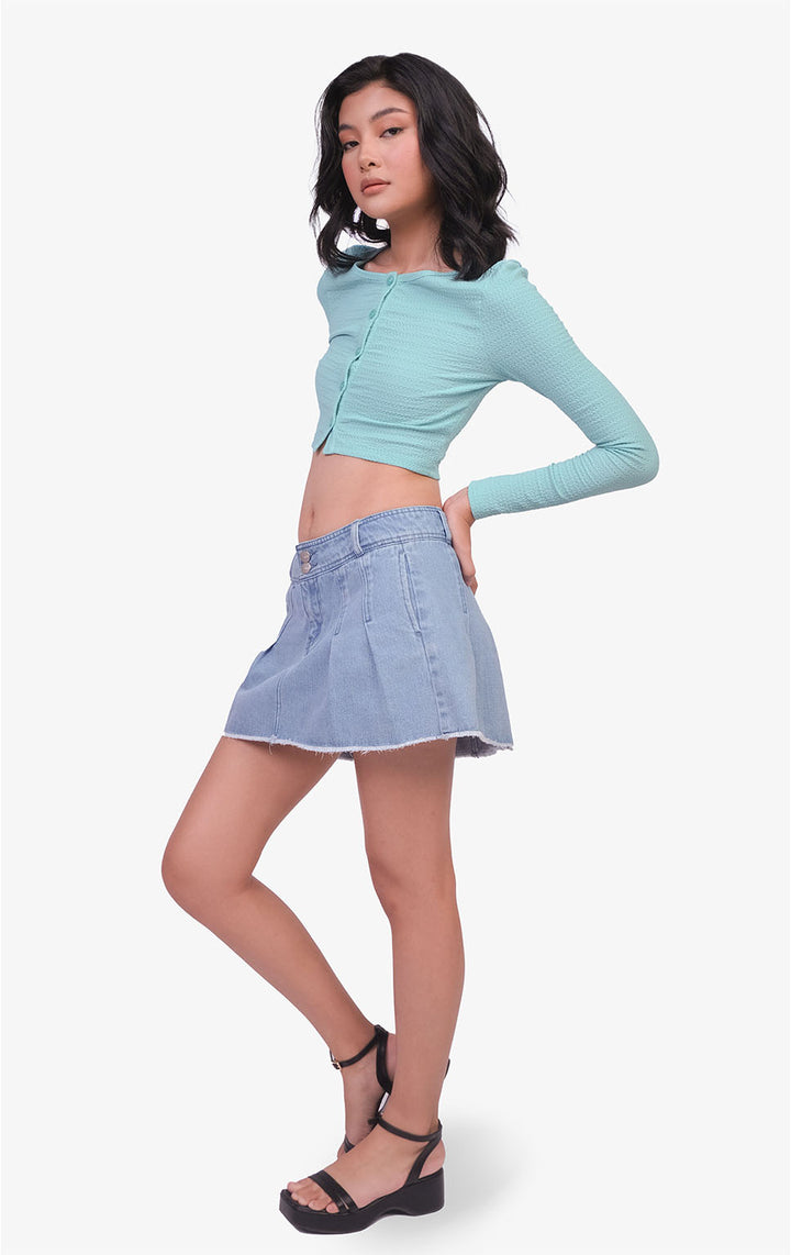 LONG SLEEVES BUTTON DOWN KNIT CROP TOP