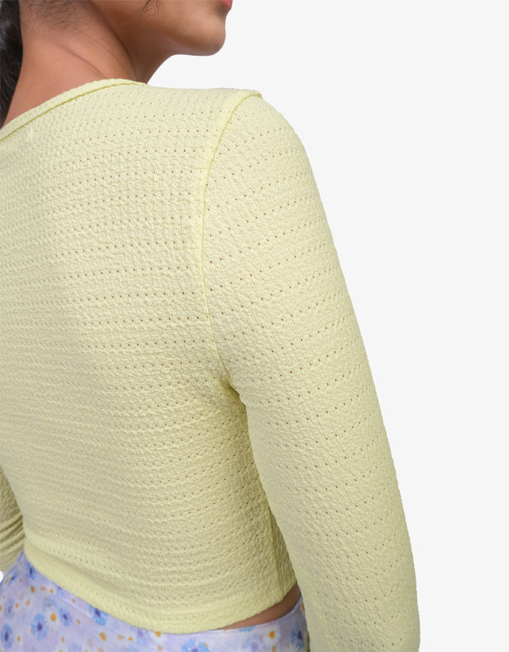 LONG SLEEVES BUTTON DOWN KNIT CROP TOP